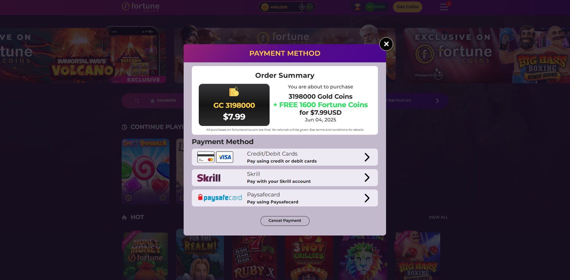 Purchase limits aren’t listed among the standard responsible gambling features on Fortune Coins. However, while going through the casino’s player safety section, I saw that users can restrict purchases by sending an email directly to customer support.