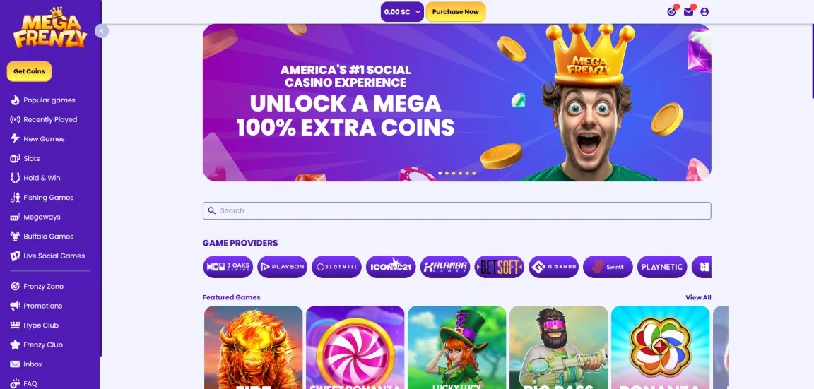 Mega Frenzy was launched in May 2025, which makes it one of the newest sweepstake casinos online you can currently find out there.